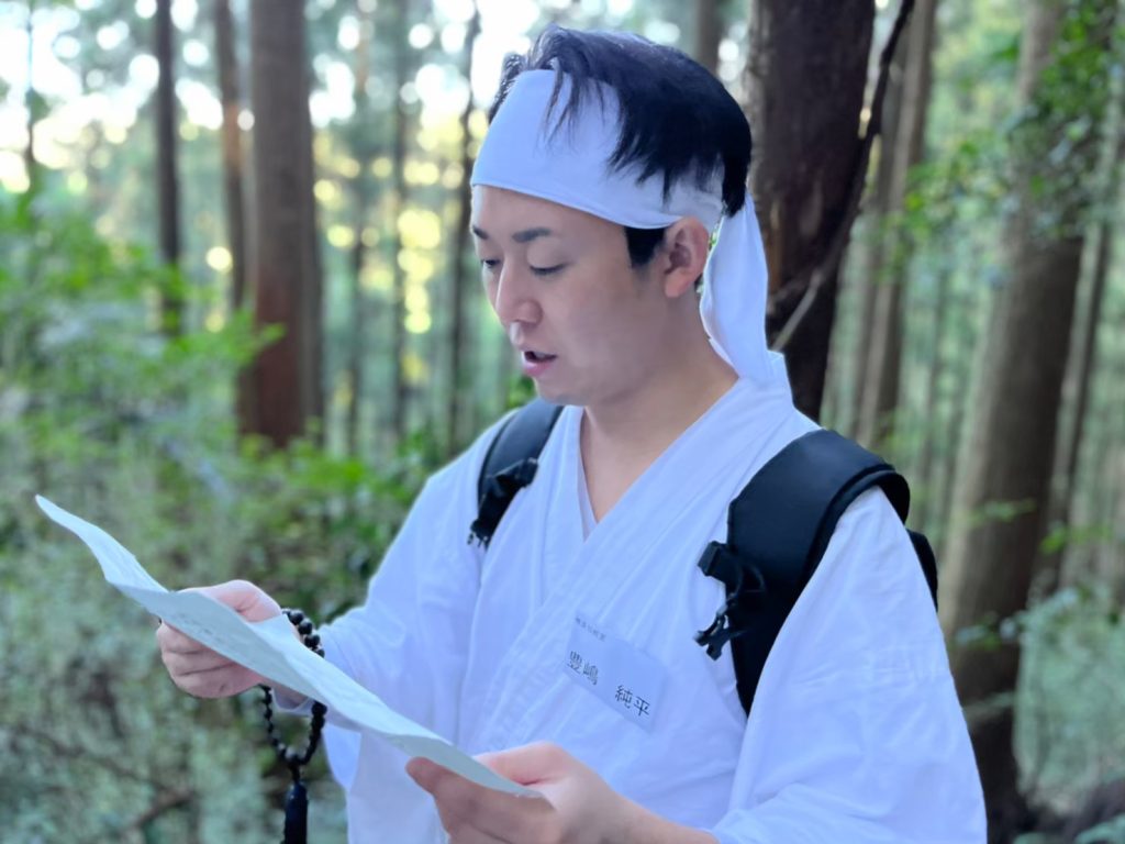 実際に山に入っていく中で、必ず「お経を唱える」時間があります。