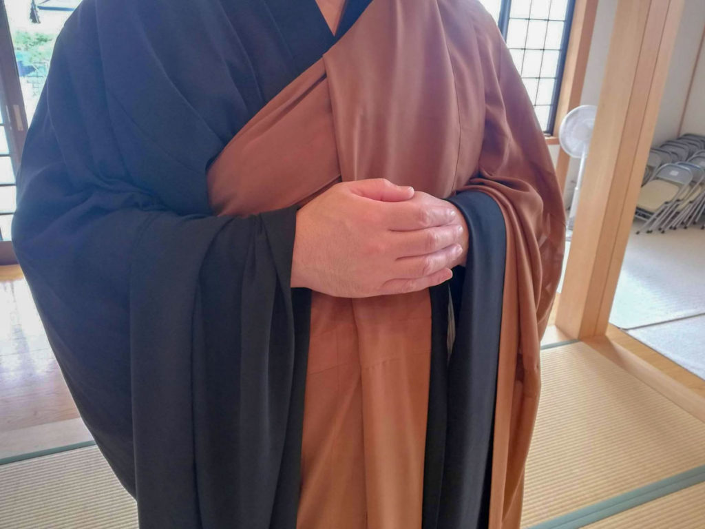 また、合唱についても作法があるようでして、「中指が鼻の高さの位置」、また顔から拳1つ分離すのが曹洞宗(他の宗派も同じかは不明です)の作法とのことです。