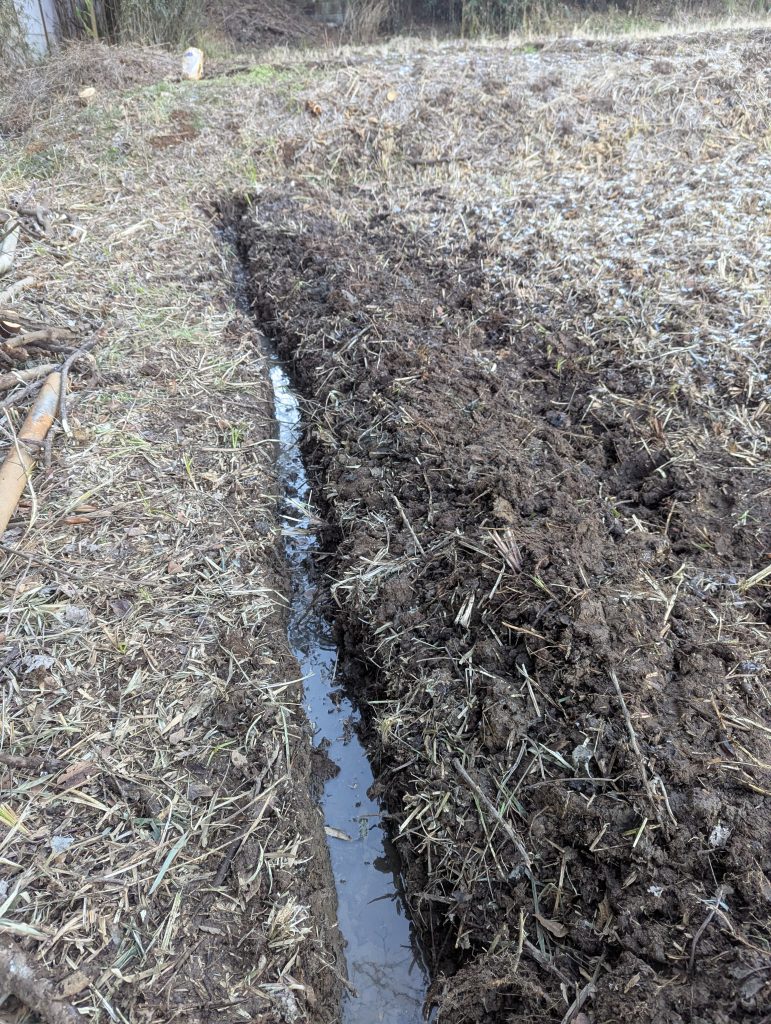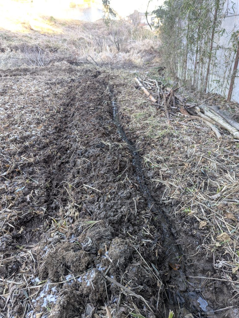 なんとか水路と、あぜ道ができました。1時間30分ほどで完了しました。
