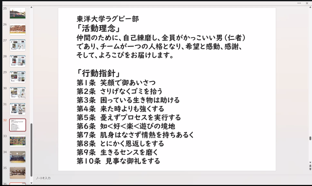 東洋大学ラグビー部のスローガンは、