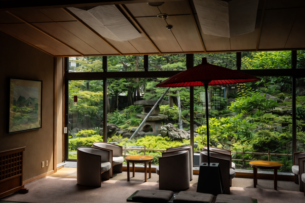 幕末明治維新の偉人、江戸無血開城の立役者、「山岡鉄舟」にゆかりのある、創業270年の割烹旅館二葉楼。日本庭園が見えるお席で、コーヒーを飲みながら、ゆっくりとお話が出来ます。(飲み物で+1,000円となります)