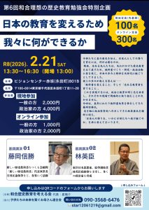 豊かな島づくりの豊嶋です。先日21日(土)は、恩師である林英臣先生、そして新しい歴史教科書を作る会顧問の藤岡信勝先生の講演会に参加して参りました。 テーマは、「日本の教育を変えるために何ができるのか」。 少し重たいテーマ […]